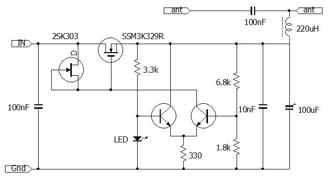 最近CQ出版の短波用アクティブ・ループ・アンテナの制作という書籍を見つけ理想のアンテナと思い制作することにしました。多少のアレンジをして考えた回路が下の回路になります。 |