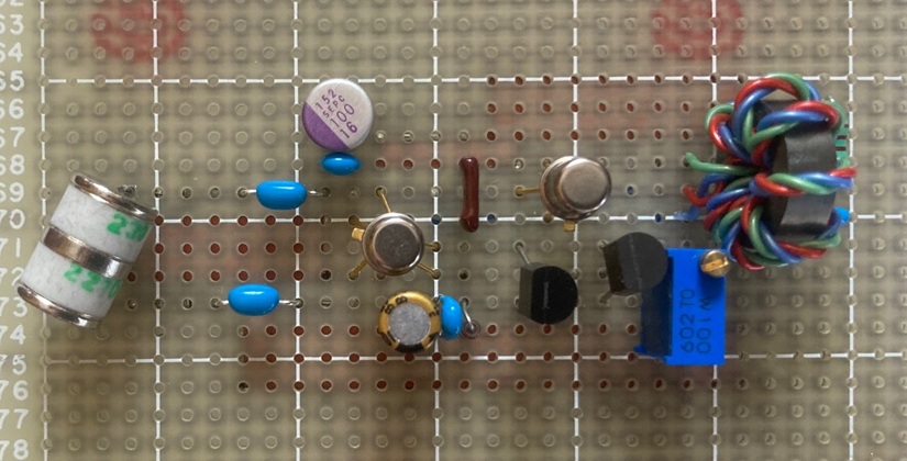 左の写真がRFアンプ部分です。スルーホール基板を使用してしまったのでショートに気をつけて製作しました。(良くないかも)